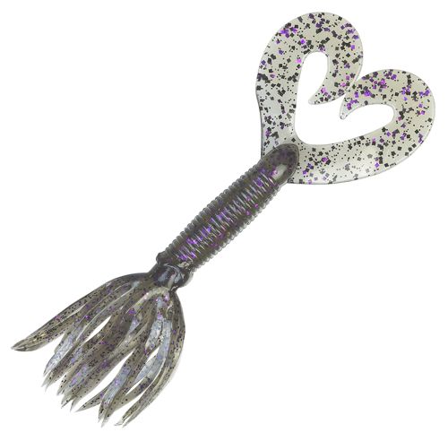 Bass Pro Shops® XPS® Skirted Double Tail Grubs - 10 см. 8 шт. Smoke Purple Black Flake