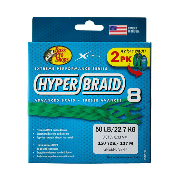 Характеристики Bass Pro Shops XPS Hyper Braid 8 Fishing Line 2-Pack: