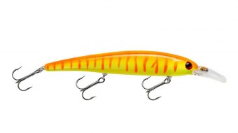 Мінноу-профіль із вираженою ролінгово-вібраційною грою активно провокує хижака навіть на пасивному кльові. Інтегрована лопатка забезпечує швидке заглиблення та рівний хід без збоїв на різних швидкостях проводки. Оснащений трьома трійниками №4 з чорного нікелю для надійної підсічки та утримання риби.