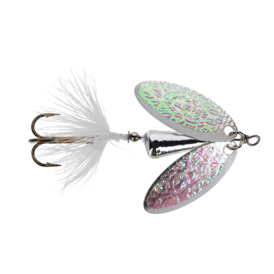 Worden's Double Flash Rooster Tail — приманка з подвійними лопатями, що створюють подвійний блиск і вібрацію, привертаючи рибу з відстані. Лопаті виготовлені з натурального срібла, латуні, міді та з покриттям, що забезпечує максимальну видимість у різних умовах водойми. Корпус з кілем зменшує закручування волосіні, забезпечуючи плавне проведення та стабільну гру. Одногачковий трійник гарантує надійне підсікання на агресивний кльов. Підходить для форелі, баса та дрібної риби, ефективна як у мілкій, так і в глибокій воді.