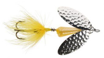 Worden's Double Flash Rooster Tail — приманка з подвійними лопатями, що створюють подвійний блиск і вібрацію, привертаючи рибу з відстані. Лопаті виготовлені з натурального срібла, латуні, міді та з покриттям, що забезпечує максимальну видимість у різних умовах водойми. Корпус з кілем зменшує закручування волосіні, забезпечуючи плавне проведення та стабільну гру. Одногачковий трійник гарантує надійне підсікання на агресивний кльов. Підходить для форелі, баса та дрібної риби, ефективна як у мілкій, так і в глибокій воді.